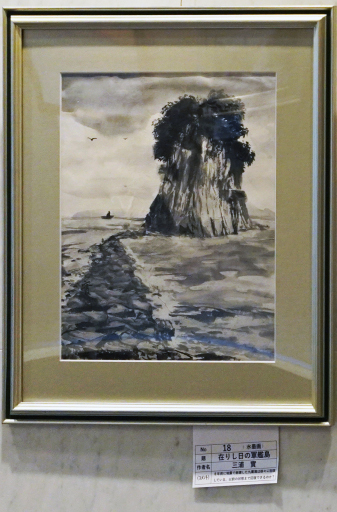 18 三浦 實 「在りし日の軍艦島」 水墨画 F8