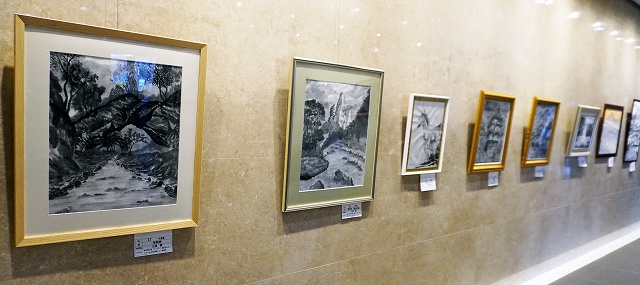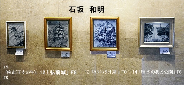 14 石坂和明 「噴水のある公園」 水墨画 F6