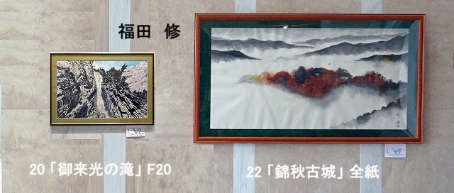 22 福田 修 「錦秋古城」 墨彩画 全紙